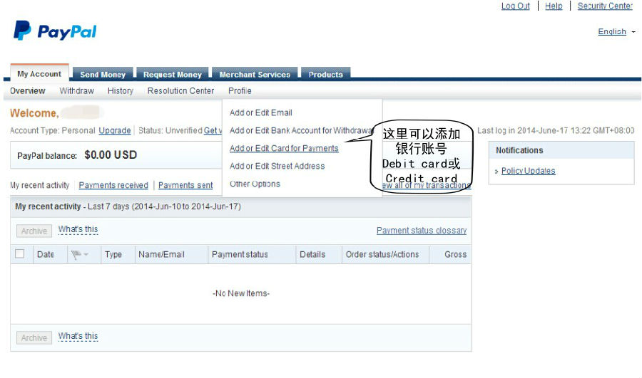 7、输入密码后,您就能访问自己的 PayPal 帐户了。